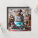 FUN SWASHBUCKLING PIRATES THEMED KIDS BIRTHDAY LAYER CAKE ON THE FRONT OF THE CARD. COMPLETELY EDITABLE COPY ON THE BACK.