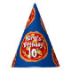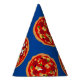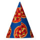 Fun pizza theme Birthday party hats for kids. Cute food design with custom text. Personalise with name and age. Trendy party supplies for children.