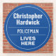 Fun Commemorative Style Wall Plaque Gift in the form of a Glass Coaster for a Policeman. Blue and white plaque. Edit the design to change the wording to suit the gift recipient.