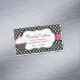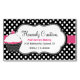 Whimsical bakery business magnet done in a black and white polka dot background, with a pink bold band, across the middle, and a decorative black edged white text area. Whimsical graphics of a pink, white, and black cupcake decorates the left side, of the card. Text is fully customisable to suit your business needs. Great for at home bakers too. Matching business cards are available.