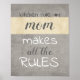This poster has a kitchen quote humour text typography design mum makes all the rules on distressed grey for wall art decor.
