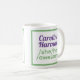Funny pronouns slogan on a coffee mug says persons name and then "She, Her, Awesome".
