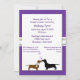 Cute bridal shower invitation done in a solid purple background, with a satin looking white ribbon, across the middle. A white text area over the ribbon is decorated, with a brown and a black dachshund, with lavender hearts between them. All text is customisable to suit your event needs. Adorable wedding shower invitation the bride to be will cherish.