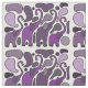 Fun purple elephants with raised trunks abstract art original fabric design.