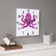 Fun purple octopi square wall clock