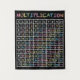 Here's a fun and unique decoration for any classroom, or for the room of any child who loves math. This tapestry features the multiplication table up to ten made in a chalkboard-style font and in a rainbow of pastel colours.