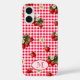Fun Red Gingham Strawberries Custom Monogram Case-Mate iPhone Case