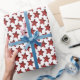 Fun Red Glitter Star Pattern on White Wrapping Paper