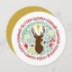 Fun Red Script Santa Reindeer Name Christmas Holiday Card. How many reindeer does Santa have and what are their names? Send holiday warm wishes and greetings to your loved ones with this cute and fun circle shape Holiday Card featuring all the Santa's magical flying reindeer with colourful Christmas ornament decorations in round circle design. Reverse to reveal a customisable greeting message and names in beautiful maroon red background. Wish you all a Happy Holidays and an Amazing New Year!
