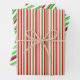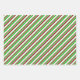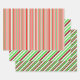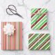 These fun Christmas and holidays themed wrapping paper sheets designs feature red, white, and green coloured striped patterns. Wrapping paper sheets like these might be fun to use when wrapping gifts being given in celebration of Christmas.