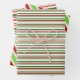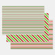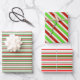 These festive, fun Christmas-themed designs feature stripes coloured green, white, and red. Festive wrapping paper sheets like these might be used when wrapping presents or gifts being given in celebration of Christmas.