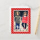 Chic greeting card with a pretty and modern script font on a trendy winter holiday season white stripes pattern on a red background. With option to customise or personalise with a photo and (limited) text of your choice.