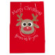 Fun Reindeer Cartoon Red Christmas Medium Gift Bag
