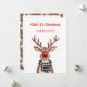 The Christmas card captures attention with its heartwarming image of Rudolph, the universally loved cartoon reindeer, instantly recognizable for his bright red nose and gentle nature. The illustration of Rudolph has been meticulously crafted, with a clear emphasis on amplifying his naturally appealing characteristics and his consistently pleasant demeanor, resulting in a design that is undeniably cute, thoroughly engaging, and brimming with holiday spirit. A wide, cheerful smile stretches across Rudolph's face, taking center stage and serving as a key element in conveying his overall friendly and welcoming presentation, making him appear approachable and full of joy. Upon turning the card over, the back unveils a carefully considered decorative border, thoughtfully adorned with a festive, Christmas-themed pattern, incorporating elements like snowflakes, holly, and perhaps tiny reindeer silhouettes, further enhancing the holiday spirit and adding a touch of visual flair. Positioned against a clean, crisp white background, which allows the illustration and border to truly stand out, a lighthearted and humorous greeting, playfully written as if it were directly from Rudolph himself, is printed in an easy-to-read font.