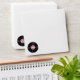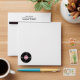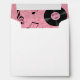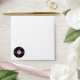 Whimsical envelope done in white, with a pink lining that has graphics of black musical notes and vinyl records. A black and pink polka dot stripe and black return address, on the back flap. The front of the envelope has graphics of a small black and pink vinyl record, in the bottom left corner. Personalise the return address for your fun 50's theme party.