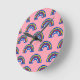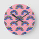 Fun Retro 80s Primary Colour Rainbows on Cute Pink Round Clock