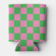 Fun Retro Checkered Pattern Pink Green Groovy Can Cooler