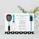 Start off your event off right with our fun retro kitchen Bridal shower invitation featuring a bright turquoise blue and black spatula & whisk Just customise our invitation with your wedding information and you're all set to go. © Cocoa Studio