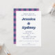 Fun Retro Plaid Chequered Purple and Blue Wedding Invitation