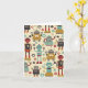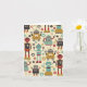 Fun Retro Robots Illustrated Pattern (Cream) Card