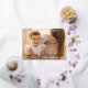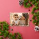 Merry Christmas Script in real gold, wishing your loved ones in style. Your photo on the back or current backing pattern. Traditional Calligraphy style. Lettering style. Big photo design. Happy, festive design. Merry Christmas in beautiful gold script.