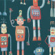 Fun little robots on a teal green background to make you smile. Perfect for a child’s nursery, bedroom or playroom. Original art by Nic Squirrell.