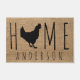 Welcome your guests into your home with this rustic, country, farmhouse design that features a faux burlap background, the word HOME, and your family name. The "O" in the word home is an illustrated black chicken silhoutte. Click "Personalise" to add your own name. If you need help with customisation, please email me at ybnormalone@gmail.com Thanks for stopping by www.zazzle.com/WhisperingPines.