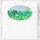 The original and cute illustration on this original and fun keychain is a painting in a "nieve" sort of style, it's bright and colourful. The picture shows some white and fluffy black faced sheep grazing behind daffodils on the hillside as the large sun shines down upon them. In the background you can see small leaf covered trees with red apples on them. This unique keychain has the fun slogan "May the sun always shine on Ewe!" and is suitable for people of all ages.