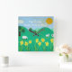 The original and cute illustration on this original and fun brownie wall clock is a painting in a "nieve" sort of style, it's bright and colourful. The picture shows some white and fluffy black faced sheep grazing behind daffodils on the hillside as the large sun shines down upon them. In the background you can see small leaf covered trees with red apples on them. This unique clock has the fun slogan "May the sun always shine on Ewe!" and is suitable for people of all ages.
