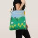 The original and cute illustration on this original and fun tote bag is a painting in a "nieve" sort of style, it's bright and colourful. The picture shows some white and fluffy black faced sheep grazing behind daffodils on the hillside as the large sun shines down upon them. In the background you can see small leaf covered trees with red apples on them. This unique colourful bag has the fun slogan "May the sun always shine on Ewe!" and is suitable for people of all ages.