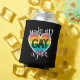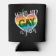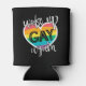 Fun pride month LGBTQ can cooler featuring a colourful rainbow heart with the self-ironic caption "Woke up gay again" in black and white modern typography fonts.