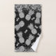 On this stylish towel set is a black backdrop with silver glitter edging complete with silver pineapples. Fun whimsical vibes.