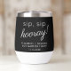 Give a wedding toast and a fun and unique souvenir keepsake gift to yourselves and your wedding guests with this personalised black thermal tumbler featuring "Sip Sip Hooray" and your names "Got Married Today" in white typography.