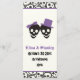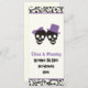 Fun skulls Halloween purple and black wedding menu card, featuring a black skull couple bride and groom on ivory background and a skull pattern border. The groom is wearing a hat and the bride a bow. This modern and contemporary gothic style wedding template design is perfect for a Halloween wedding.