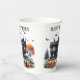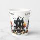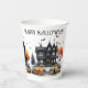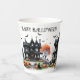Get into the Halloween spirit with these spooky paper party cups! Featuring "Happy Halloween" written at the top on both sides in a vintage gothic font, the design showcases three black haunted houses, accented by pops of orange from pumpkins, jack-o-lanterns, and spooky trees. The black and white colour scheme, combined with vintage, grunge-inspired typography, gives the cups a nostalgic, gothic feel, perfect for your Halloween festivities. These cups are sure to add a playful yet eerie vibe to your costume party or spooky event. Fun, Gothic, and festive for any Halloween gathering! Fun Spooky Halloween Party Paper Cups With Haunted Mansion Houses Pumpkins Bats Ghosts