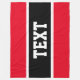 This bright sporty design features a wide black horizontal centre stripe outlined in sporty white pinstripes centred vertically between bright red stripes above and below. The optional large bold white text, if used, should be personalised.