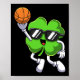 Fun St Patricks Day Shamrock Playing Basketball Bo Poster