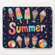 Bright and colourful popsicles, ice cream cones, and refreshing drinks are arranged around the word "Summer," creating a lively and festive atmosphere