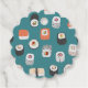 Cute Japanese sushi design on a teal green background. Blank space on the back to write your name or message.