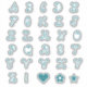 Fun swirly teal colour font typography monogram text capital letters alphabet sticker pack for monogramming, personalising, customising, note writing, journals, notebooks, and more. This set also includes an exclamation point, heart, flower, and star.