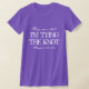 Fun t shirt for bride to be. Buy me a shot i'm tying the knot tee for brides to be. Funny drinking quote for bachelorette night. Wedding humour. Vinatge Slogan with distressed look letters. Personalizable text for girls night out. Cool design for engaged girls and gals getting married. Purple and white or custom colour combination.