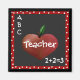 This fun teacher's magnet is done in black, red, and white. Graphic artwork of a red heart shaped apple against a blackboard style background and a whimsical red, with white polka dot frame. White text reads ABC and 1+2=3 in opposite corners of the magnet. Teacher in white text is customisable to read anything you want. Great little gift for any teacher or tutor.