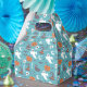 This design features a cute and colourful Halloween pattern set against a vibrant teal background. The design includes a playful mix of Halloween icons, such as cheerful ghosts, smiling jack-o'-lanterns, black cats, witches' hats, and skulls. Scattered among these main elements are crescent moons, bats, spiders, and small branches with leaves, all adding to the festive atmosphere. The use of bold, contrasting colours like orange, white, black, and grey makes each element stand out, creating a lively and fun pattern perfect for Halloween decorations, costumes, or themed party supplies. The overall feel is lighthearted and whimsical, ideal for celebrating the spooky season in a colourful and cheerful way.