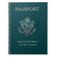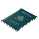 Handy bound notebook done in teal and silvery grey and made to look like a passport. Light grey text, on the bottom of the notebook, is ready to personalise. The perfect little notebook to list your travel plans and ideas.