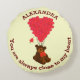 Fun teddy bear and red heart personalised round cushion