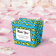 Fun tennis party favour box with custom text. Cute tennis ball pattern design. Great for kid's Birthday party, club gathering, team celebration etc. Custom blue background colour.