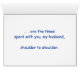 Word to the Wives ~ ~ Your husband desires a shoulder-to-shoulder friendship with you. Let him know you agree with him.