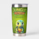 Tortoise "Jungle Party, Go Wild!" Green Insulated Tumbler! Featuring a whimsical baby box turtle cartoon graphic character, inviting you into a world of woodland wildlife. This fun nature design is perfect for forest animal lovers and anyone who enjoys cute, cosy zoo vibes.