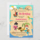 Ahoy there mateys! Enjoy this cute pirate and mermaid birthday invitation featuring a treasure map, pirate ship, pink girl pirate, mermaid, parrot, skull and crossbones and treasure chests! Add your own special touch with custom templates for all of your party details on the front of the card. The back of the card includes more pirate boys and girls, mermaids, and treasure chests on a treasure map to use as a game board for more creative fun with dice and tokens. Perfect for children of all ages!