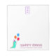 Notepad for kid's party planner business features cute party Trex with party balloons and party hat for your office needs.